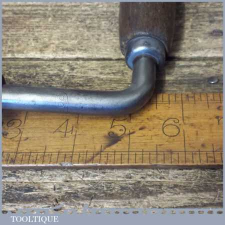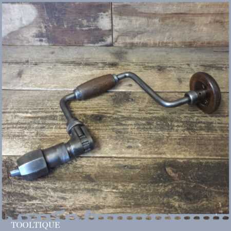 Vintage carpenter’s ratchet brace with beechwood handles and a 10” swing in good used condition, refurbished ready for use.