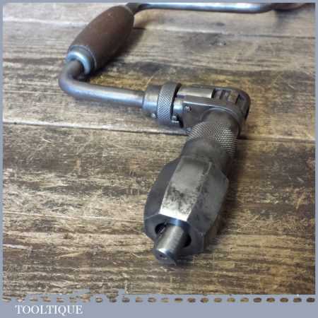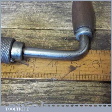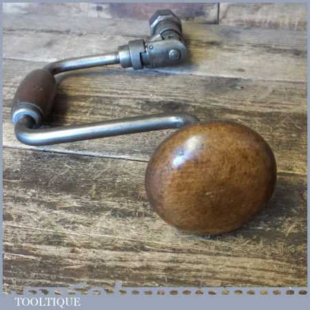 Vintage carpenter’s ratchet brace with beechwood handles and a 10” swing, refurbished ready for use.