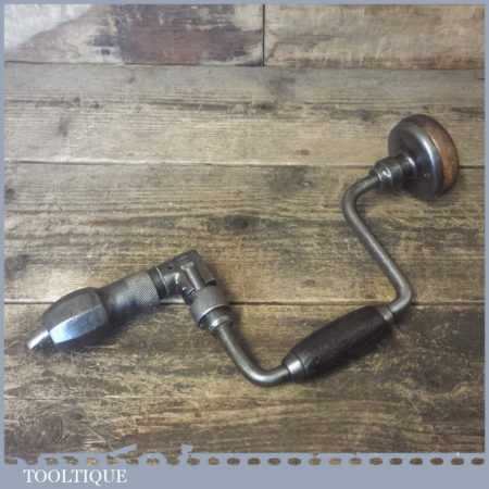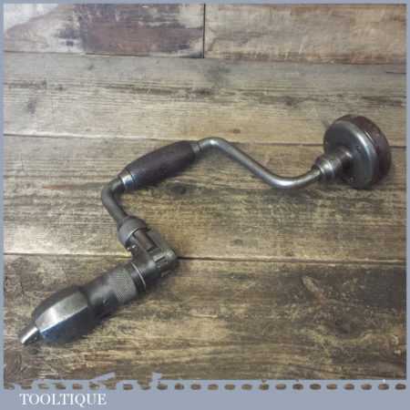 Vintage carpenter’s ratchet brace with rosewood handles and a 10” swing, refurbished ready for use.