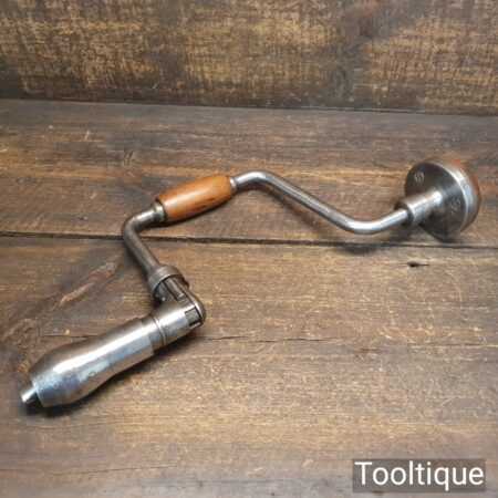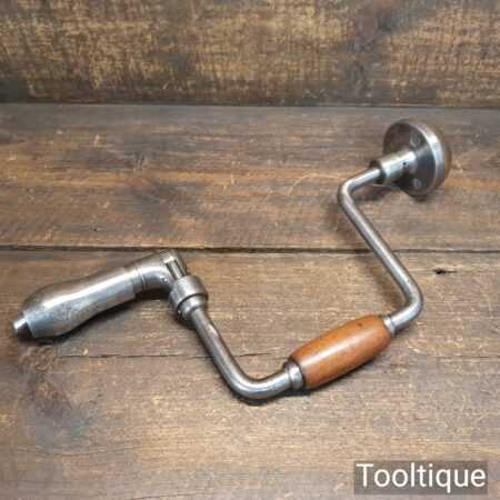 Vintage carpenter’s ratchet brace with beechwood handles and a 10” swing in good usable condition