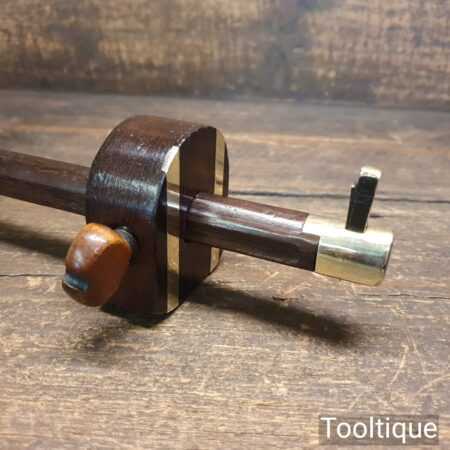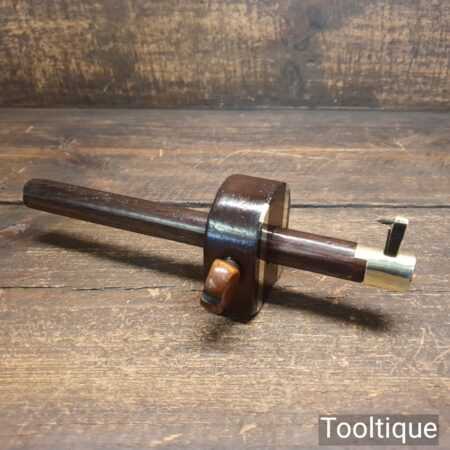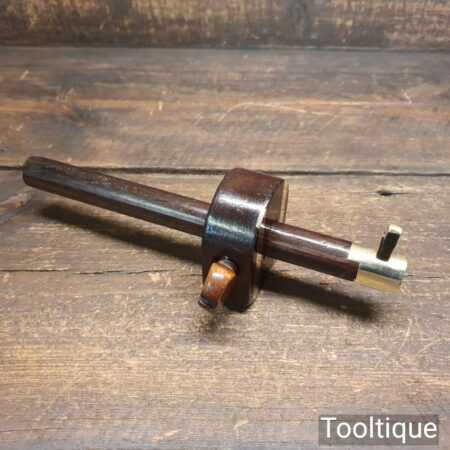 Vintage carpenter’s rosewood and brass cutting gauge with boxwood screw, in good used condition.