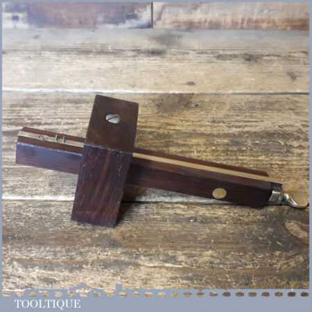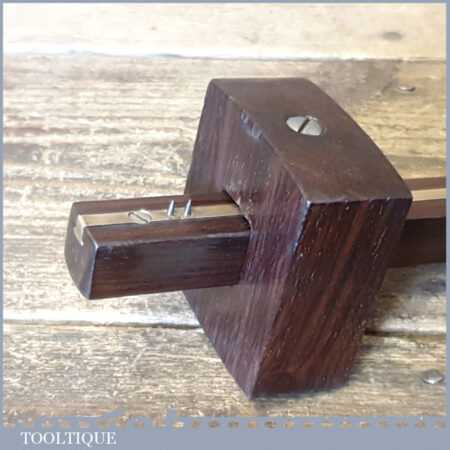 Vintage carpenter’s rosewood and brass mortise gauge with screw adjustment, smooth action and good pins, in good used condition.