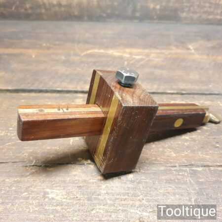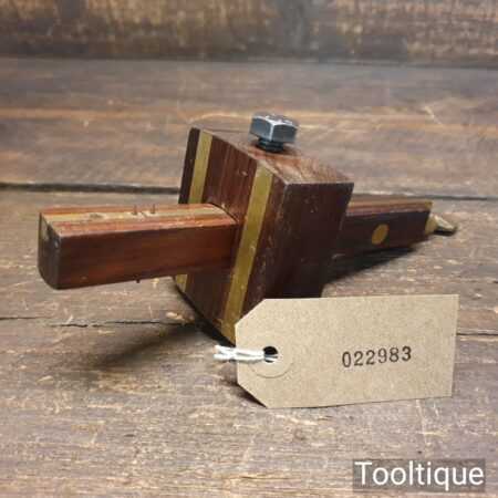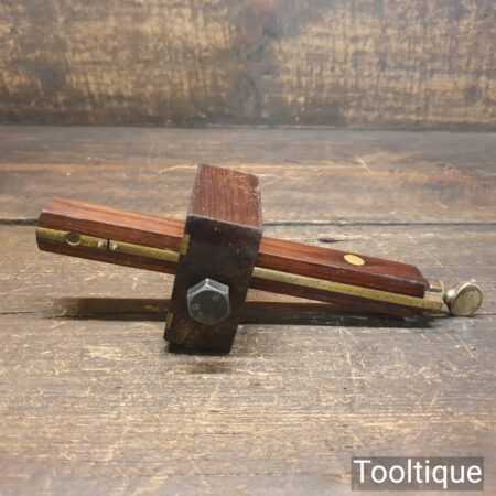 Vintage carpenter’s rosewood and brass mortise gauge with smooth action and good pins, in good used condition. Note: replacement bolt, works fine though.