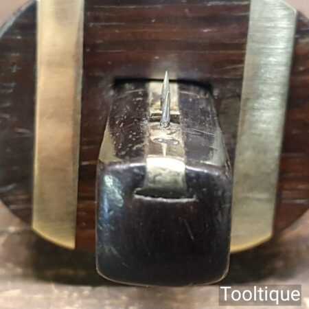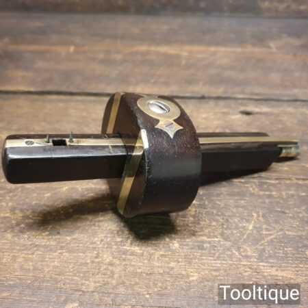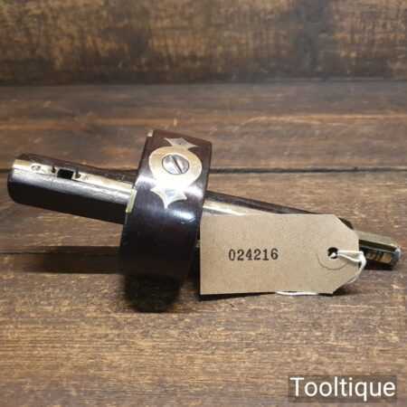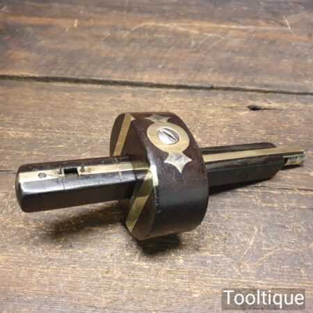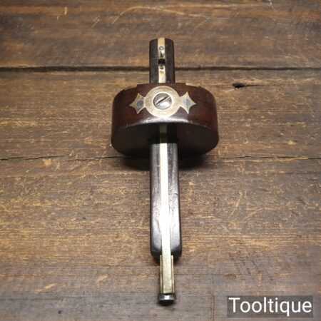 Vintage carpenter’s rosewood and brass mortise gauge with screw adjustment, smooth action and good pins, in good used condition.