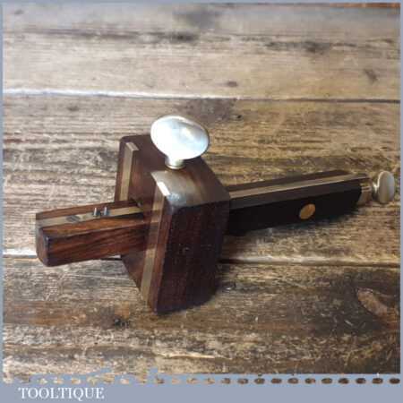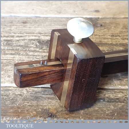 Vintage carpenter’s rosewood and brass mortise gauge with screw adjustment, smooth action and good pins, in good used condition.