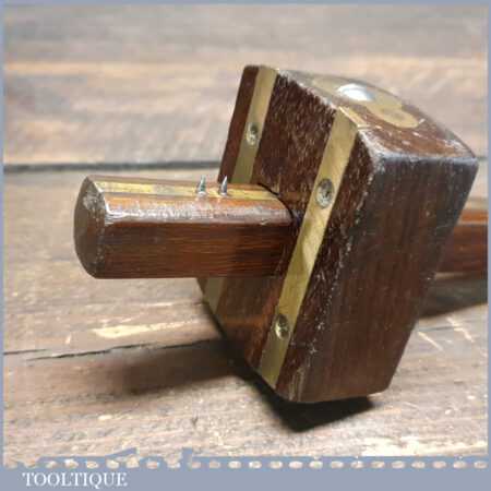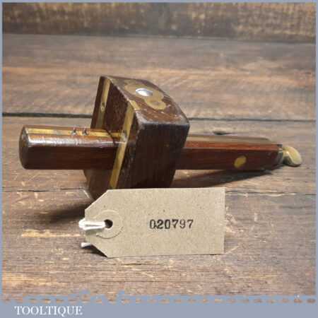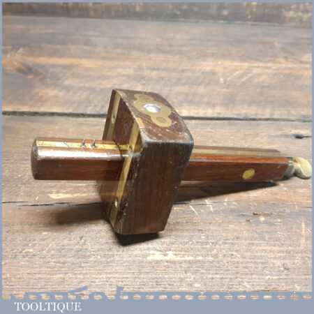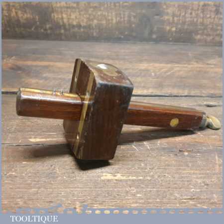 Vintage carpenter’s rosewood and brass mortise gauge with screw adjustment, smooth action and good pins, in good used condition