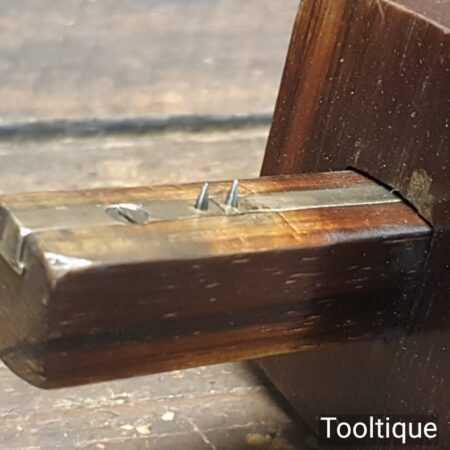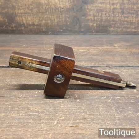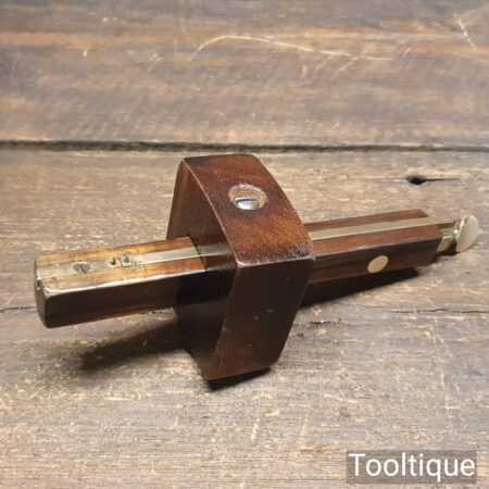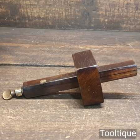 Vintage carpenter’s rosewood and brass mortise gauge with smooth action and good pins, in good used condition