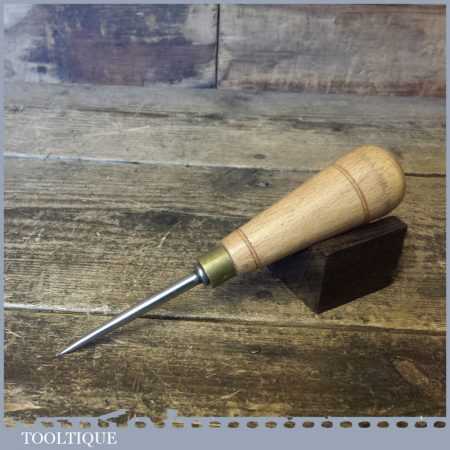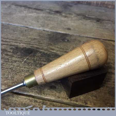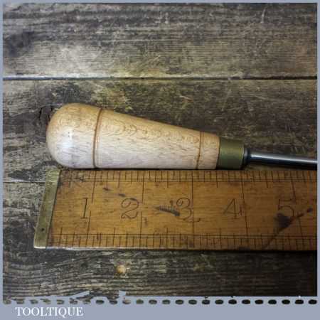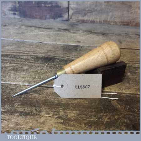 Vintage carpenter’s round birdcage awl with beechwood handle in good used condition.