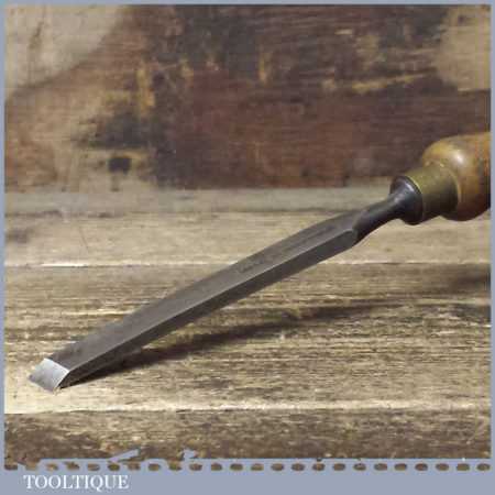 The chisel has been checked to ensure the tang is seated properly and the handle is solid and fit for use. All refurbished chisels are water cooled during the sharpening process to ensure the tempering is not affected. These old cast steel chisels are hand forged and far superior in quality because of the high carbon steel that was used which produces a keener edge, this was also generally used throughout the full length.