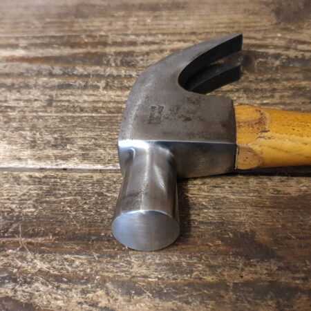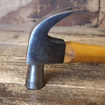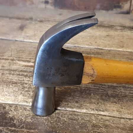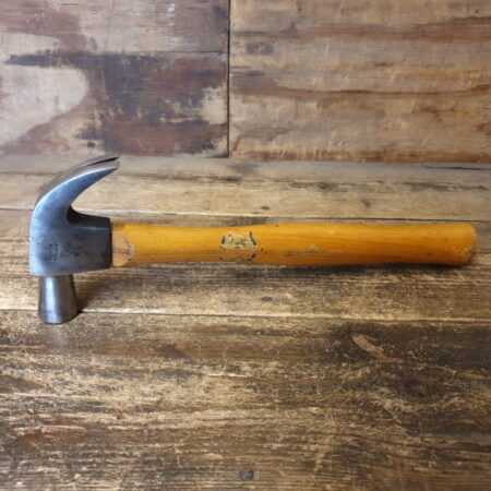 Vintage carpenters Sheffield forged cast steel claw hammer with wooden handle in good used condition.