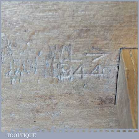 Vintage carpenters wooden mallet with broad arrow stamp in good condition measuring approx 15” in length with a 6”x 3” head. Stamped with the War Dept broad arrow and dated 1944, and quite a scarce survivor.