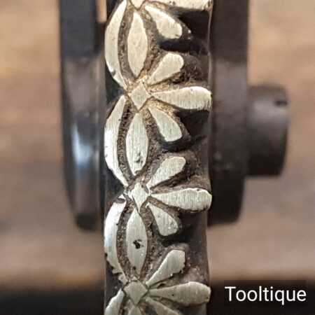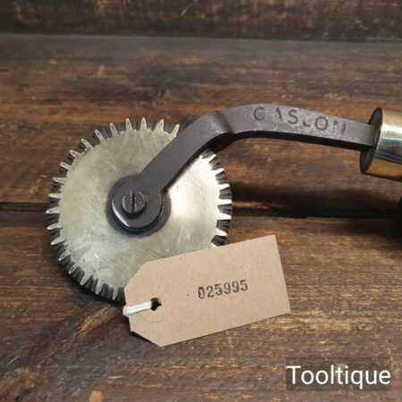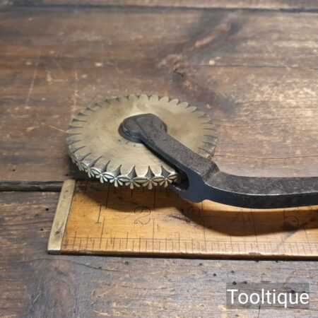 Ornate vintage Caslon of London brass bookbinding shoulder wheel tool in good used condition.