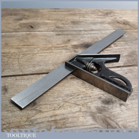 Vintage Cast Steel Adjustable Combination Set Square is on par in quality as the Rabone ones and is a must have tool for any decent tradesman, these are far more robust than the modern types for marking square lines. This tool is in good working order.