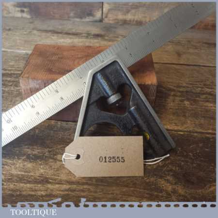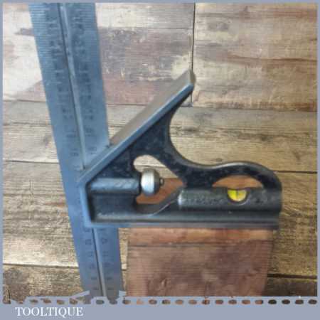 Vintage cast steel adjustable combination square fully refurbished and in good used condition.
