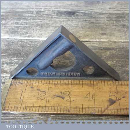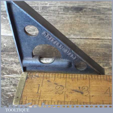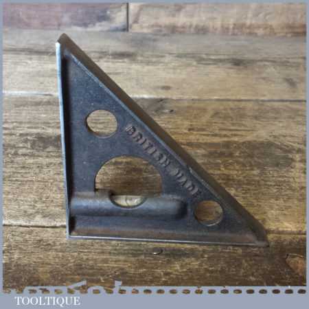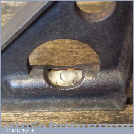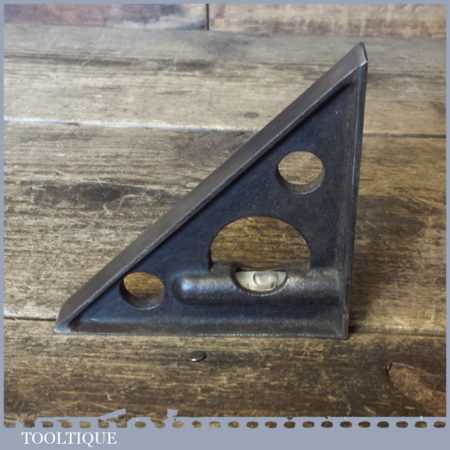 Vintage cast steel corner mitre square with spirit level, in good used condition.