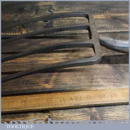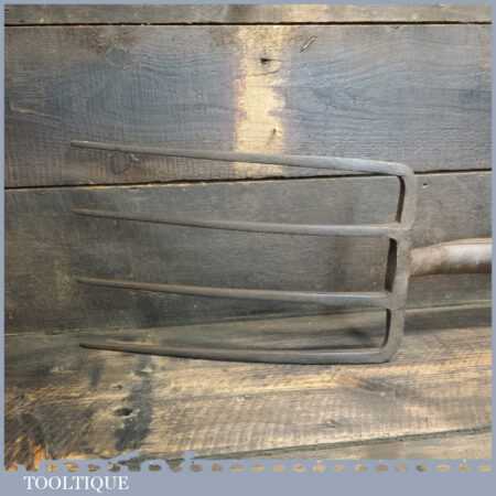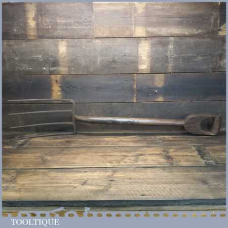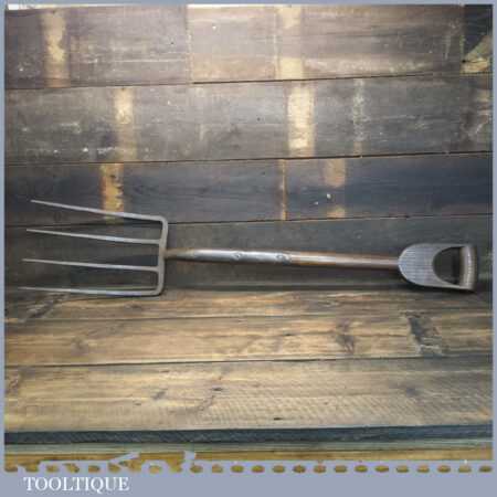 Vintage cast steel garden fork with D shaped solid wooden handle (stamped with crowsfoot broad arrow and dated 1952) in good used condition.
