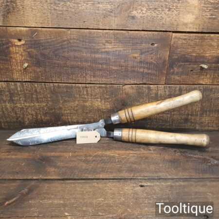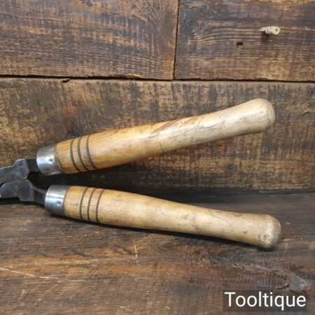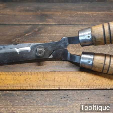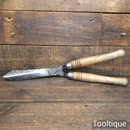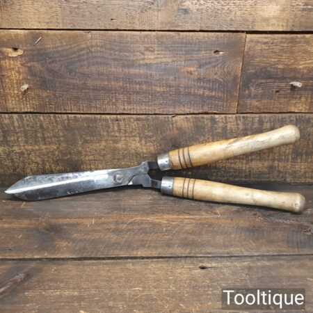 Vintage cast steel garden shears with beechwood handles in good used condition, fully refurbished sharpened and honed ready for use. Note: these have been properly sharpened where they will slice rather than hack and will cut paper like scissors.