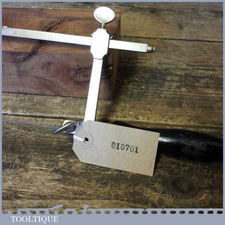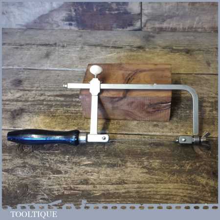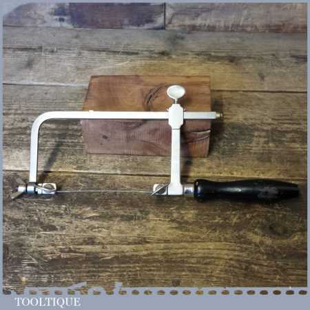 Vintage cast steel jewellers piercing saw with ebonised handle in good used condition.