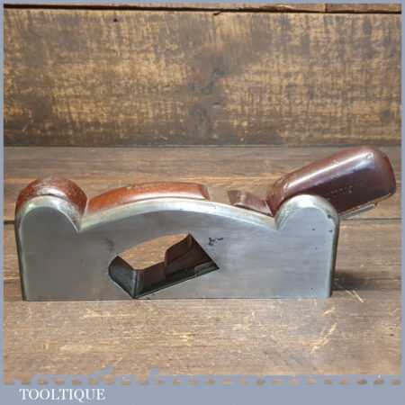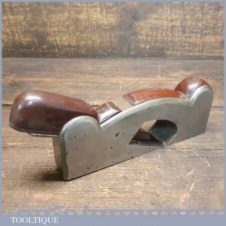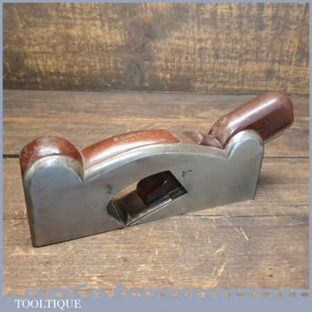 Vintage cast steel shoulder plane with mahogany infill and wedge, in good used condition. Lapped flat and sharpened ready for use. Note: fillet added to the underside of the wedge to secure the blade properly.