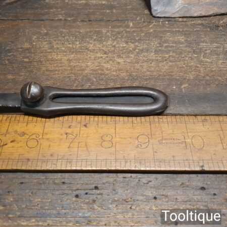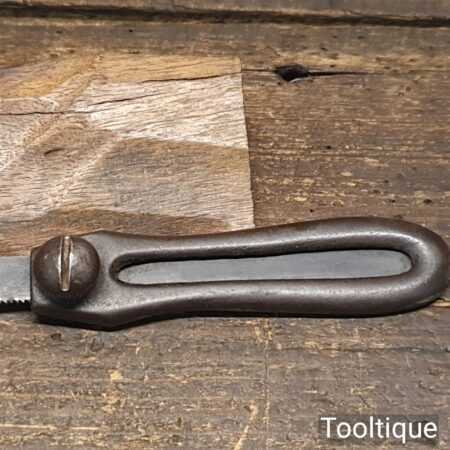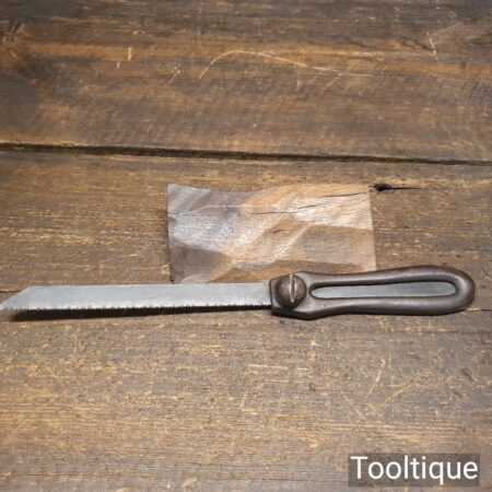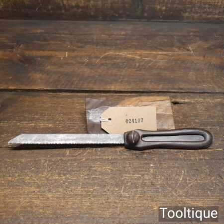 Vintage cast steel utility pad saw handle with hacksaw blade ready for use.