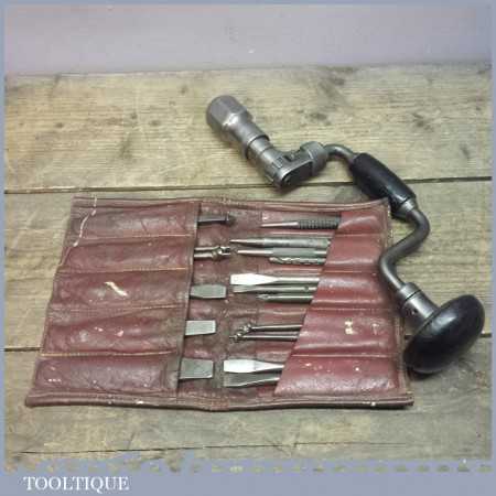 Vintage Chapman, Stanley Works woodworking Brace and various bits in a nice leather roll. It’s a really nice collection to add to your kit.