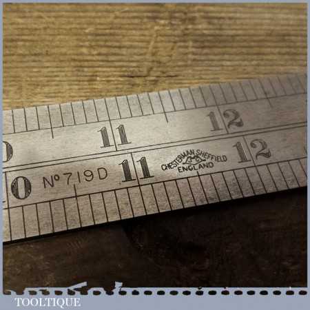 Vintage Chesterman double sided imperial 24” steel expansion ruler No: 719D in good used condition. Certainly rulers for life as they are inscribed markings which are nice and clear.