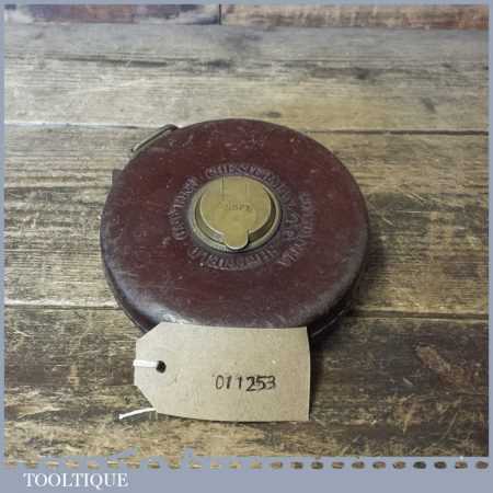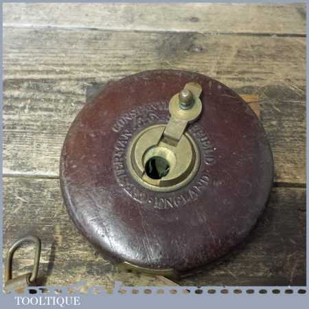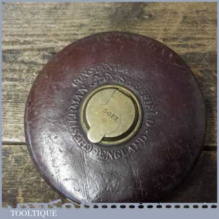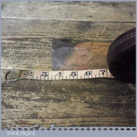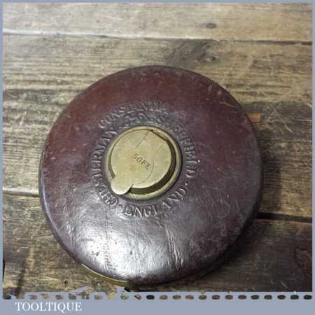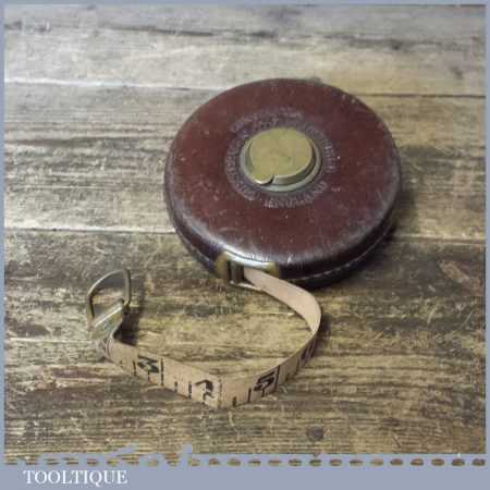Vintage Chesterman leather bound 50ft measuring tape in good used condition.
