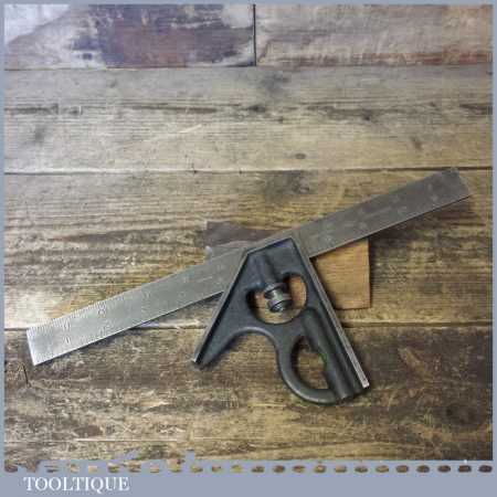 Vintage Chesterman No: 180 cast steel adjustable sliding square fully refurbished and in good used condition. These old robust squares are a must for any good professional as they are such a good useful tool.