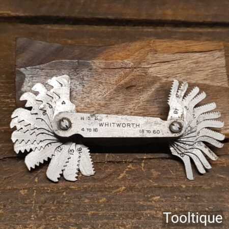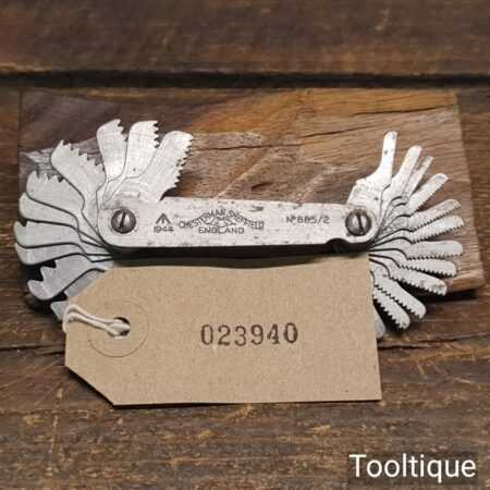 Vintage Chesterman No: 885/2 Whitworth 4-16 & 18-60 screw thread gauge (stamped with crowsfoot broad arrow and dated 1944) in good used condition.