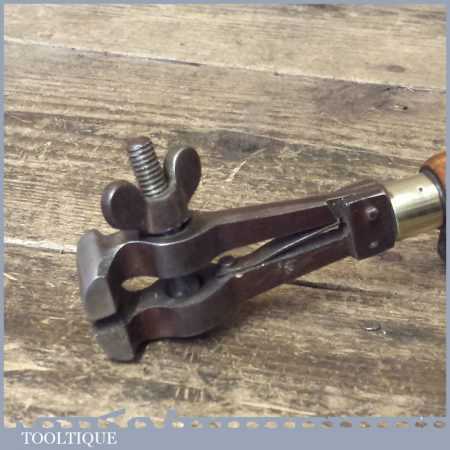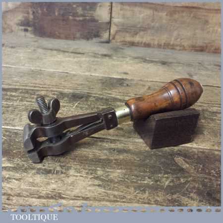 Vintage clock maker’s or engineer’s hand vice with beechwood handle, in good used condition.