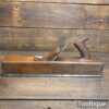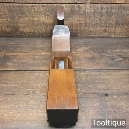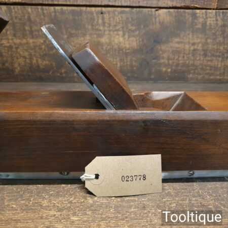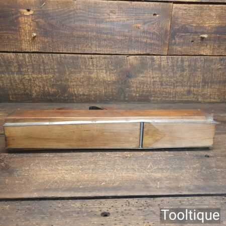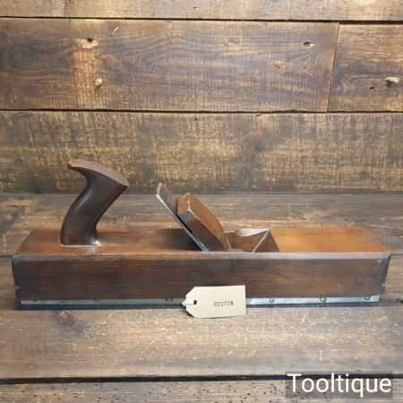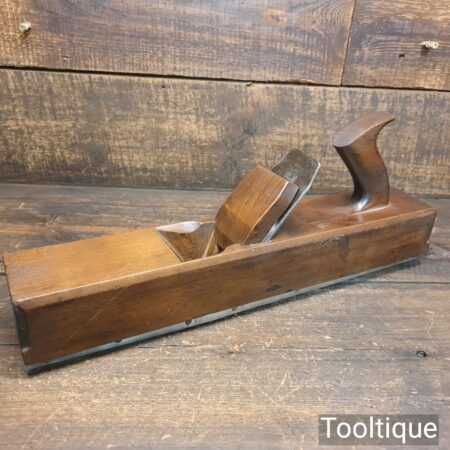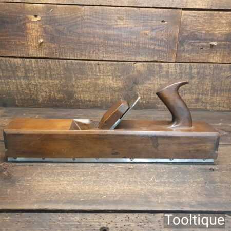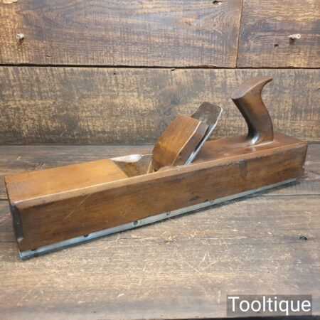 Vintage coachmakers 17” beechwood plane in good used condition. Lapped flat and sharpened ready for use. Note: Curved sides to the sole with later applied alloy lining.