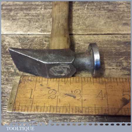 Vintage cobber’s leatherworking hammer with wooden handle, in good used condition.