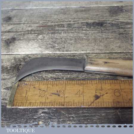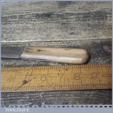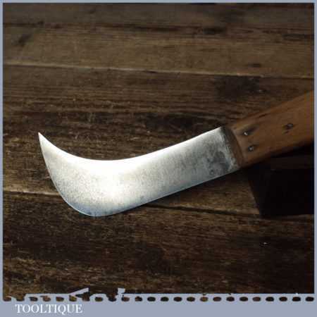 Vintage cobblers leatherworking butt knife with beechwood handle, in good sharpened ready to use condition.