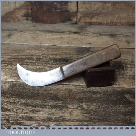 Vintage cobblers leatherworking butt knife with beechwood handle in good sharp used condition.