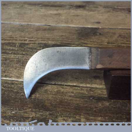 Vintage cobblers leatherworking butt knife with rustic beechwood handle in good sharp used condition.