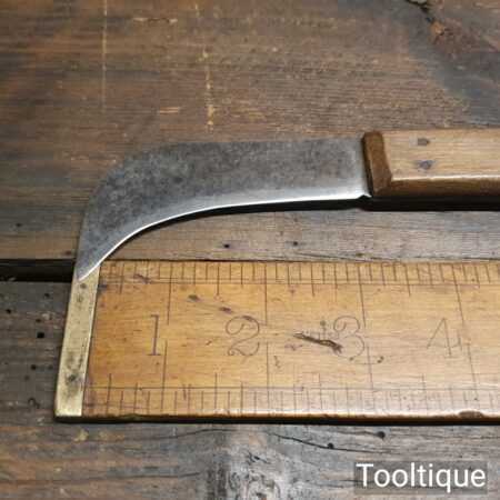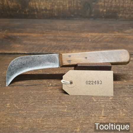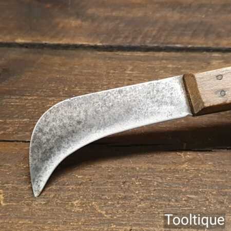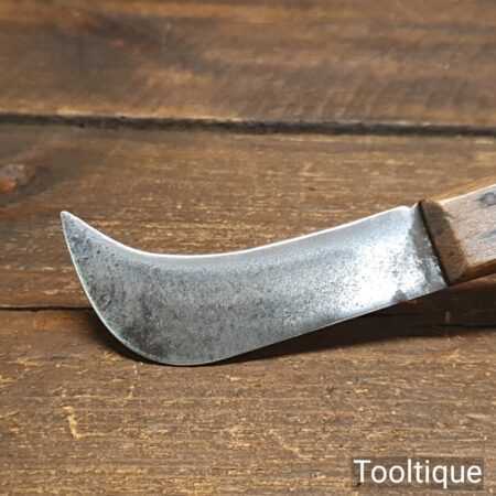 Vintage cobbler’s leatherworking butt knife with beechwood handle, in good sharp used condition.