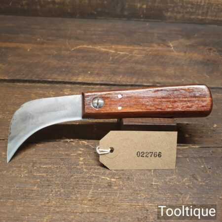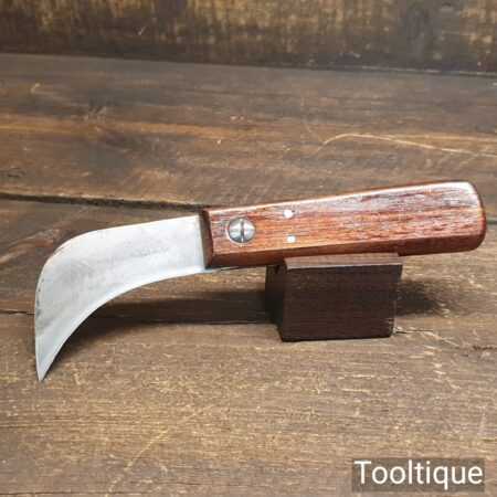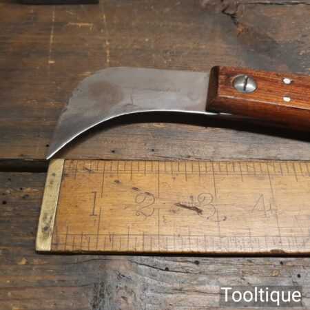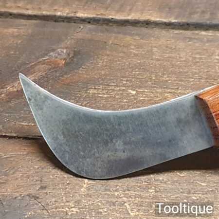 Vintage cobbler’s leatherworking butt knife with beechwood handle, in good sharp used condition.