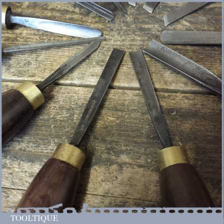 All refurbished chisels are water cooled during the sharpening process to ensure the tempering is not affected. These old cast steel chisels are hand forged and far superior in quality because of the high carbon steel that was used which produces a keener edge, this was also generally used throughout the full length.