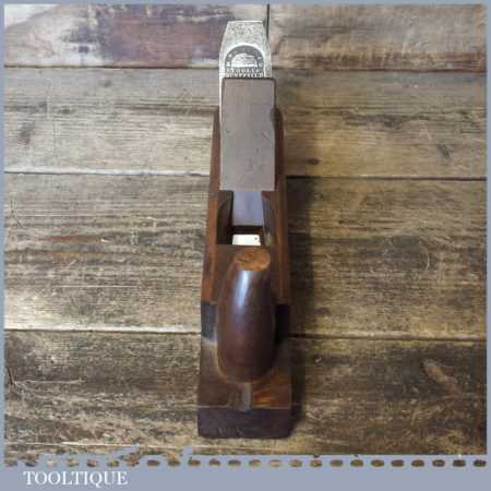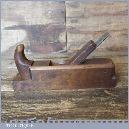 Vintage continental beechwood smoothing plane with iron by M T & Sloyd tool Co, Sheffield, in good used condition. Lapped flat and sharpened ready for use. Note: Little chip behind the tote handle which doesn’t affect its use, see images.