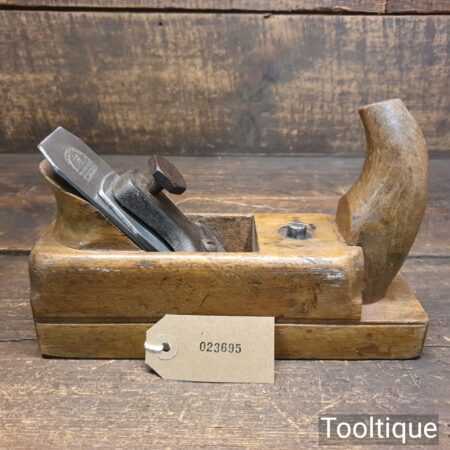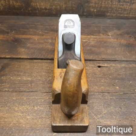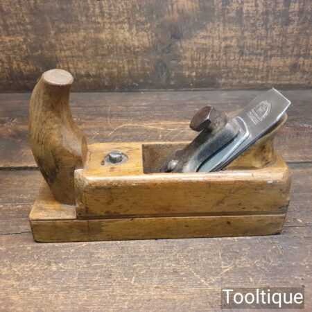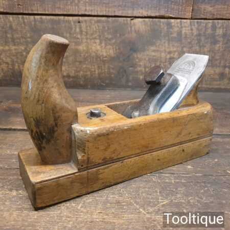 Vintage continental horned beechwood smoothing plane with an adjustable throat in good used condition. The plane has been fully refurbished, lapped flat, fettled and sharpened ready for use. Note: This has an Isaac Greaves laminated Iron and this is a replacement which works well.