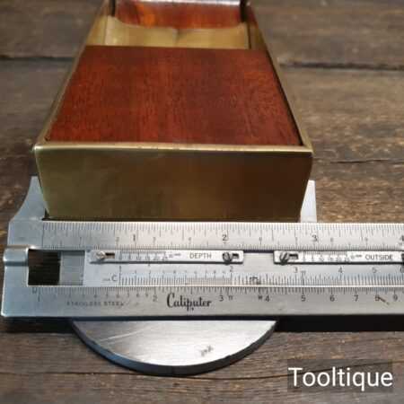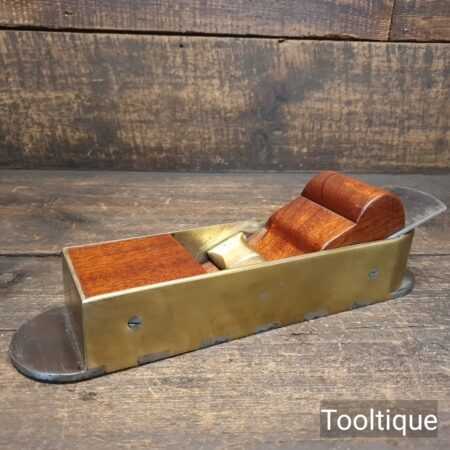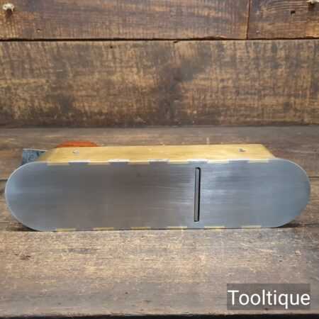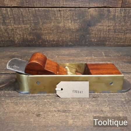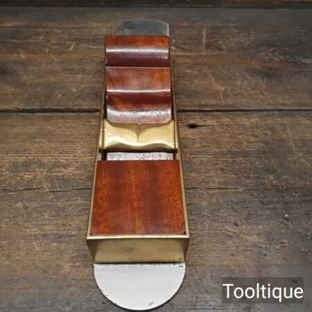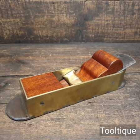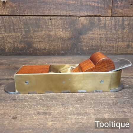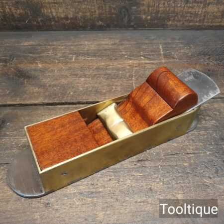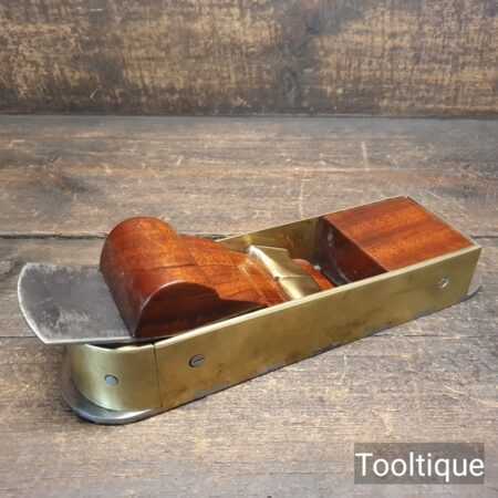 Vintage Craftsman made dovetailed brass sided mitre plane with a mahogany infill, fully refurbished ready for use and in good used condition. It has been lapped flat to 0.02mm and takes a nice fine shaving. Note: Tapered sided iron (width) to reduce lateral play and tapered iron for wooden wedge.