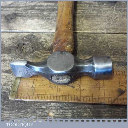Vintage cross pein hammer with wooden handle, in good used condition. Note: Makers name is Indecipherable.