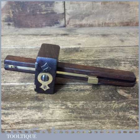 Vintage D. Flather & Sons rosewood and brass mortise gauge with smooth action and good pins, in good used condition.