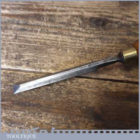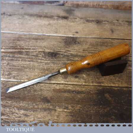 Vintage Diamic carpenter’s 3/8” bevel edge chisel with ash handle in good used condition, fully refurbished sharpened and honed ready for use