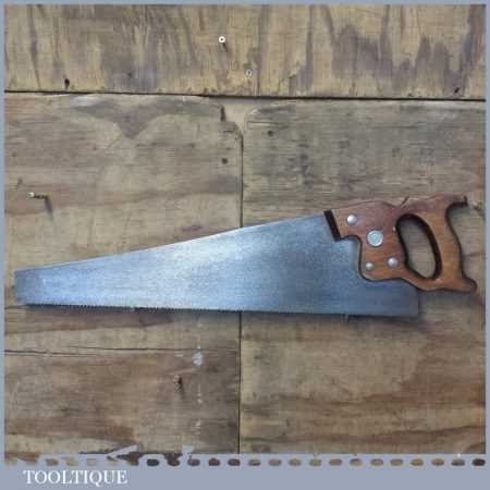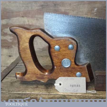 The saw has been thoroughly cleaned, jointed, resharpened and set by hand so that all the hard work of getting an old vintage saw right has been undertaken. We do this so that the next sharpening is easier and no more than a quick freshen up would be required. Those who are familiar with sharpening will know this is no small job and requires skill, effort and time to achieve good results.
