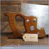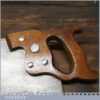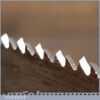 The saw has been thoroughly cleaned, jointed, resharpened and set by hand so that all the hard work of getting an old vintage saw right has been undertaken. We do this so that the next sharpening is easier and no more than a quick freshen up would be required. Those who are familiar with sharpening will know this is no small job and requires skill, effort and time to achieve good results.