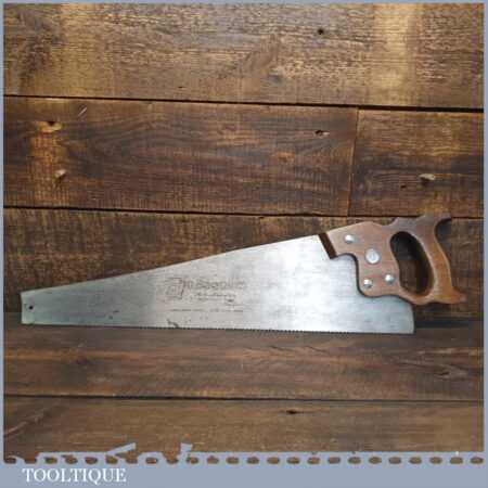 Vintage Disston, Canada 22” cross cut panel handsaw with 9 tpi, fully refurbished and sharpened ready for use. These may not have the same reputation as the early Philly saws but they certainly compete in quality with the best of the rest.