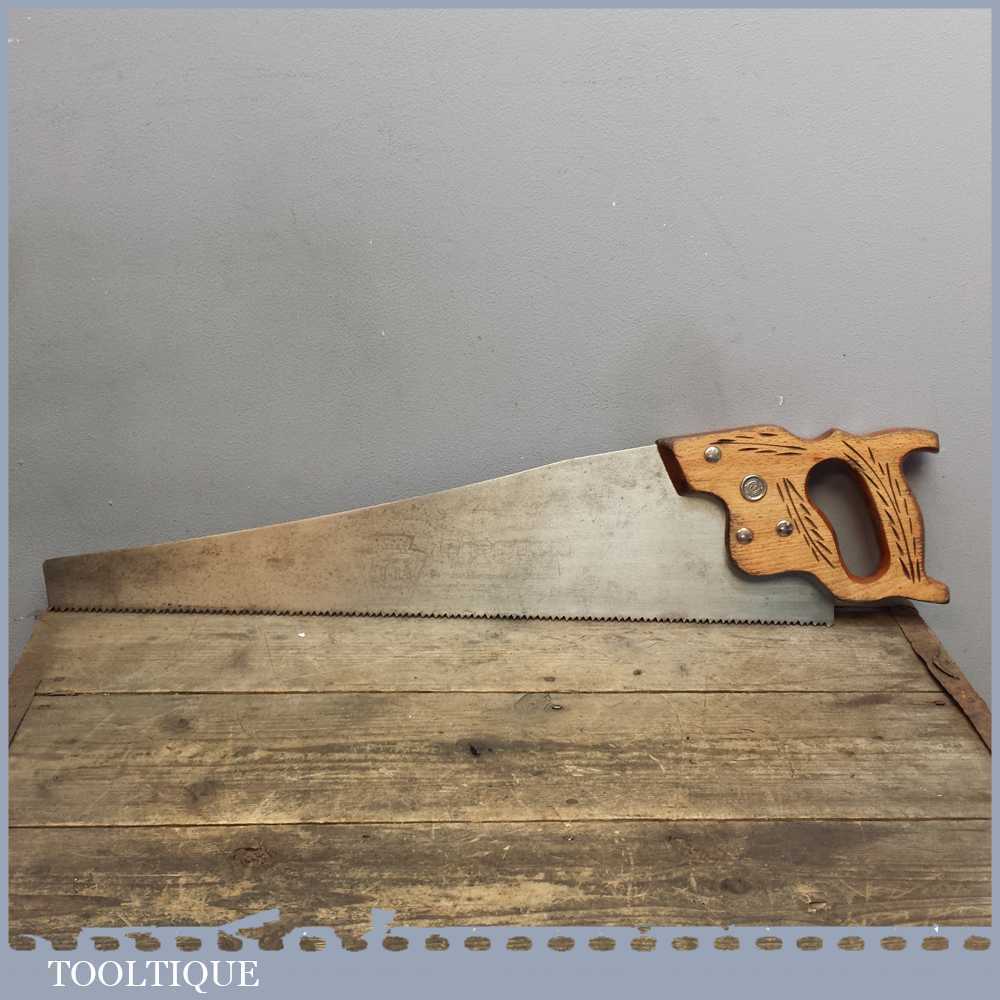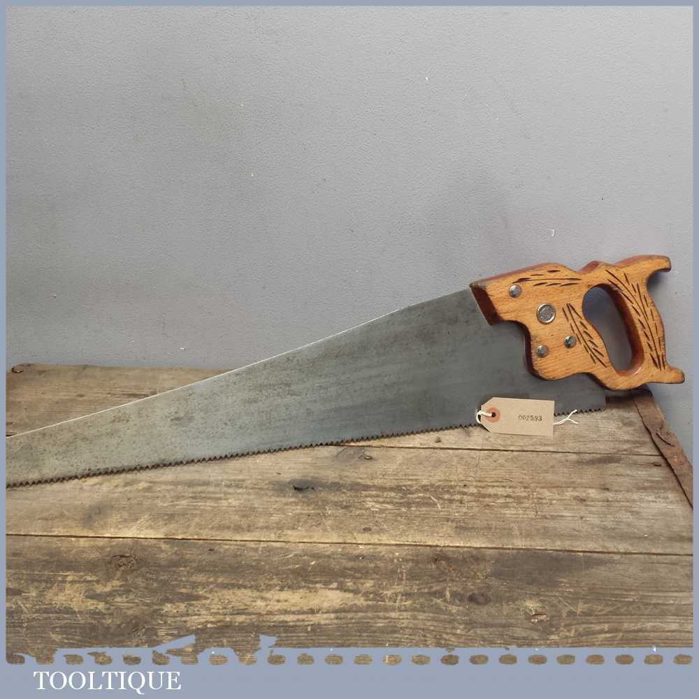 Vintage Disston D8 cross cut handsaw in good sharp and straight condition measuring approx 23” long. With 6 teeth per inch and approx 23” long it’s a good saw comparable to the best on the market today.