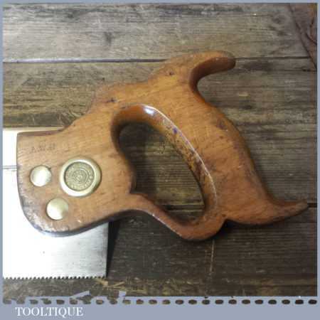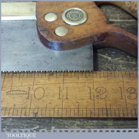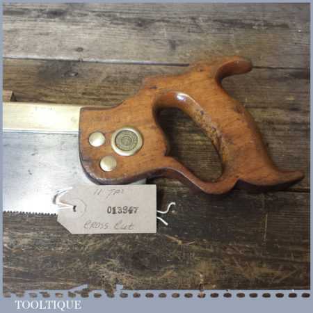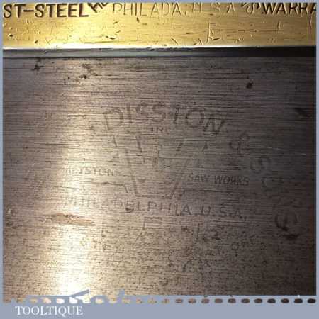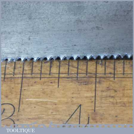 The saw has been thoroughly cleaned, jointed, resharpened and set by hand so that all the hard work of getting an old vintage saw right has been undertaken. We do this so that the next sharpening is easier and no more than a quick freshen up would be required. Those who are familiar with sharpening will know this is no small job and requires skill, effort and time to achieve good results.