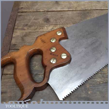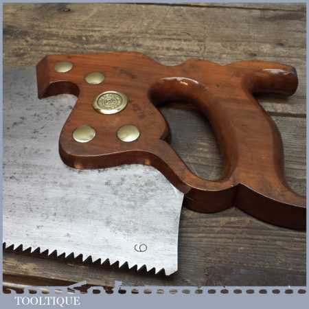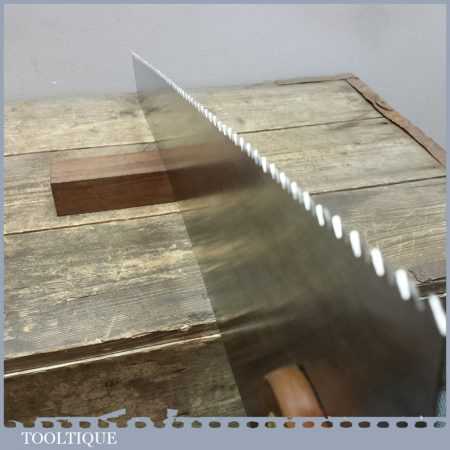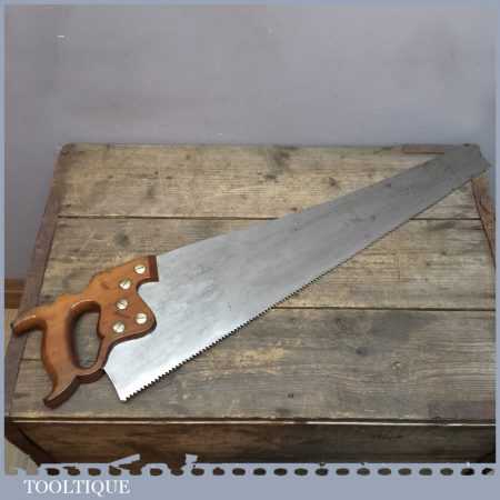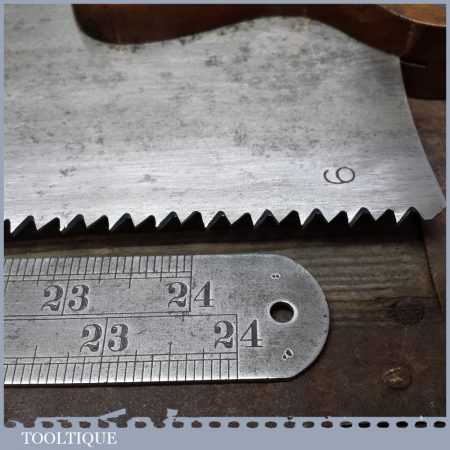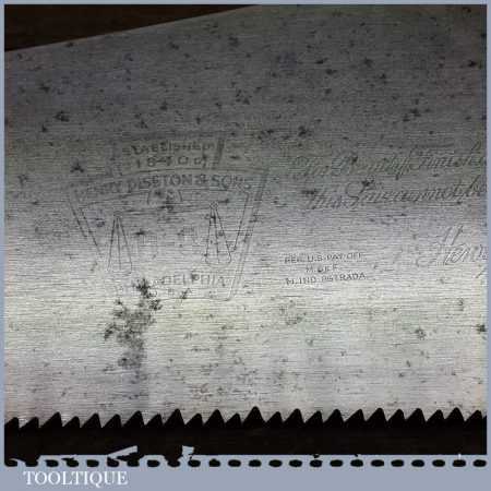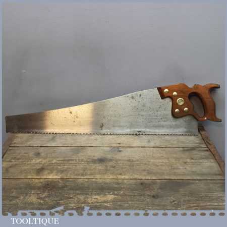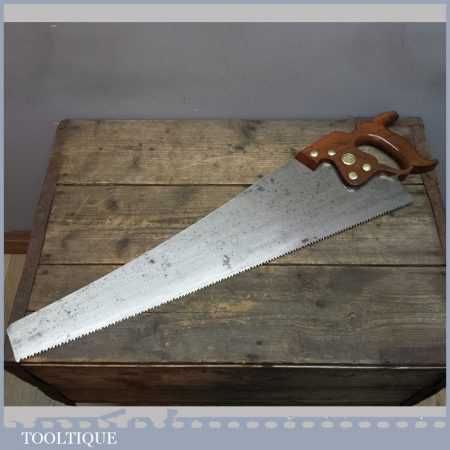 Vintage Disston Philadelphia USA 26” cross cut saw with 6 TPI is in good straight and sharp condition and is ready to use and this is a very good example. This saw looks to have been sharpened with a deep gullet to allow better clearance of sawdust. Those who do not know this, these Philadelphia saws were regarded by many in the trade as being the best ever produced by any company from any period.